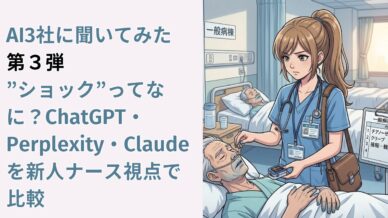 AI❌新人看護師 AI3社に聞いてみた 第3弾|”ショック”ってなに?ChatGPT・Perplexity・Claudeを新人ナース視点で比較