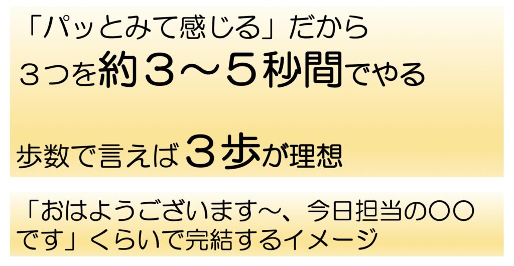 ・ベッドサイドで患者さんと会い5秒以内で第一印象行う