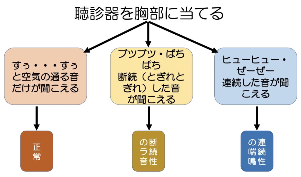 聴診器で聞きわる肺音
